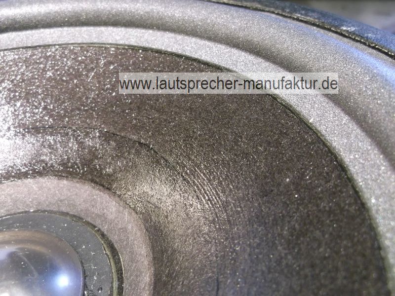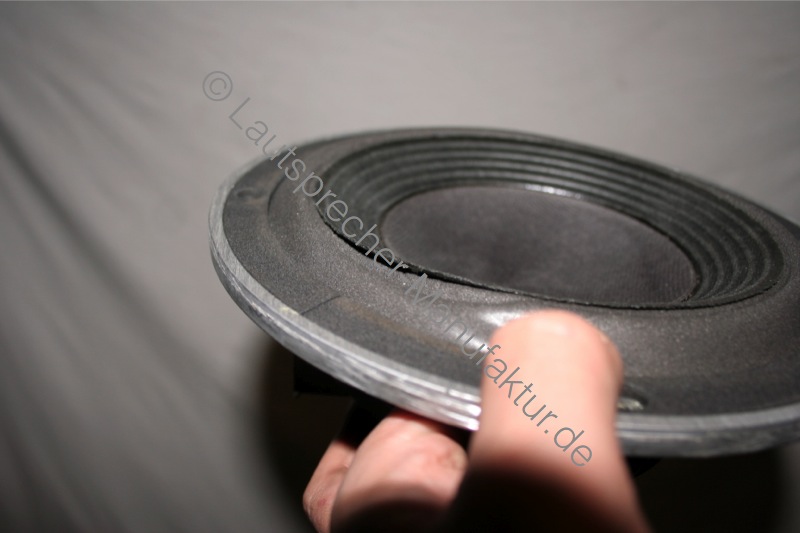 Darüber hinaus stellt die Sicke einen flexiblen und luftdichten Abschluss des Lautsprechergehäuses dar. Ist die Sicke beschädigt kann Luft an dieser Stelle aus dem Gehäuse austreten und die Gehäuseabstimmung (Resonanzfrequenz des Gehäuses) ist falsch.