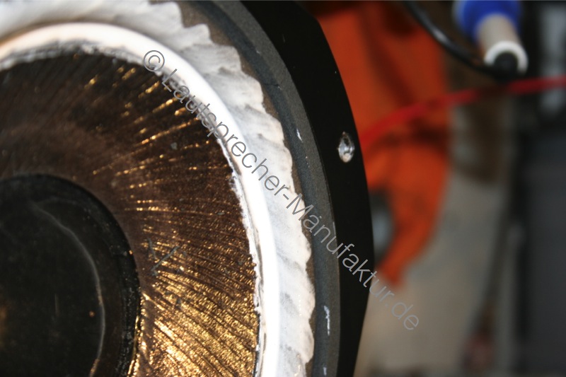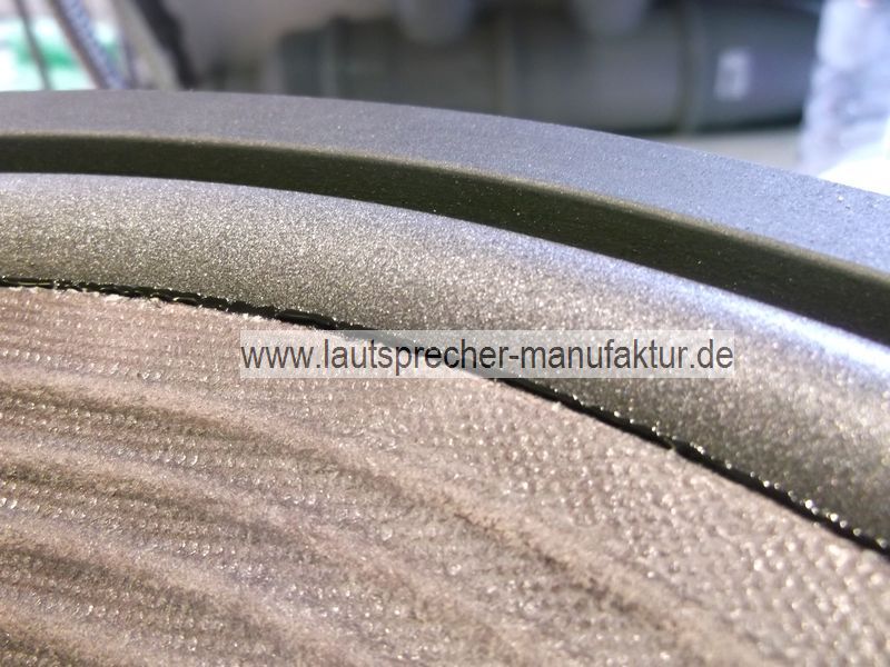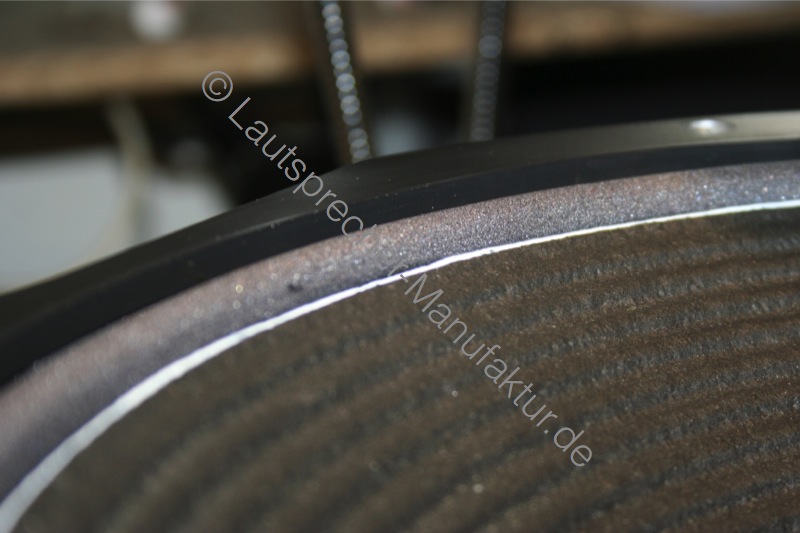 Je nach Lautsprecher reproduzieren wir Zierklebenähte und setzen bei Sicken, welche von unten beklebt werden, Klebenähte auf die Oberseite wie beim Original.